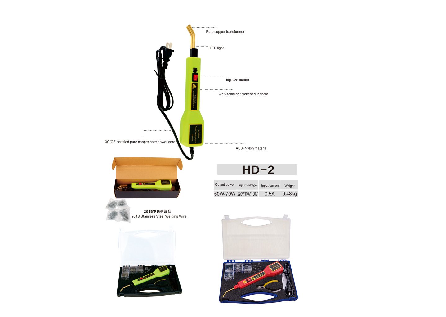 Conventional Plug-in Plastic Welder equipped with a 70W core heating system, it achieves rapid and stable temperature rise while delivering consistent, robust power supply. The straight-handle ergonomic design ensures anti-slip and heat-resistant operation, allowing flexible one-handed use. Suitable for diverse scenarios including construction, home appliance repair, and automotive plastic restoration, it provides strong and efficient welding performance. Ready for immediate operation upon plugging in, it is ideal for both professional tasks and everyday repairs.